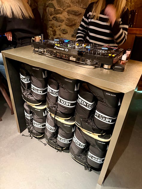 Le S Bar Megève - Fun cocktails and a DJ booth made out of Moon Boots (iconic). (Beli rating: 8.2)